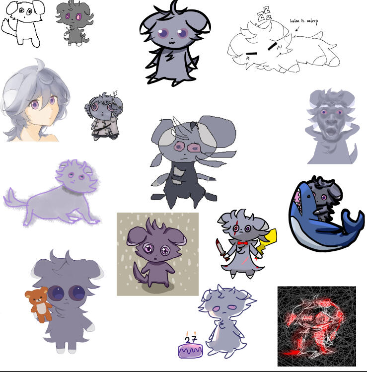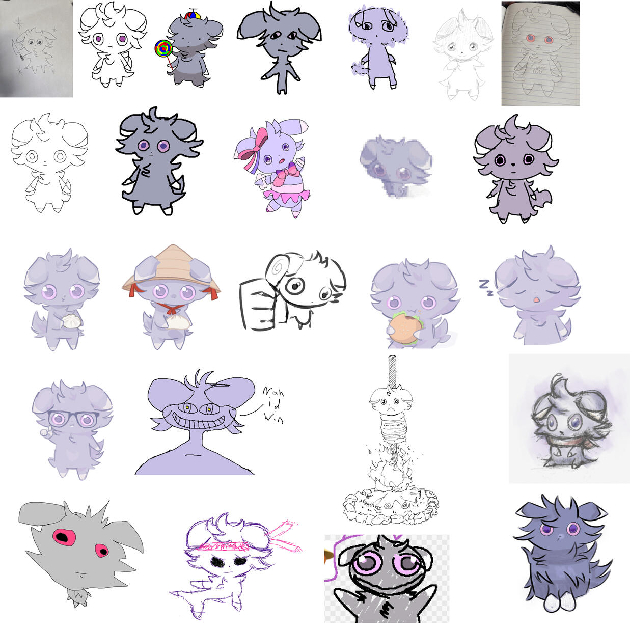 all the espurrs drawn by my friends and community. i add more when a canvas is full of them. contact me on discord (leeian.) to send me one :D